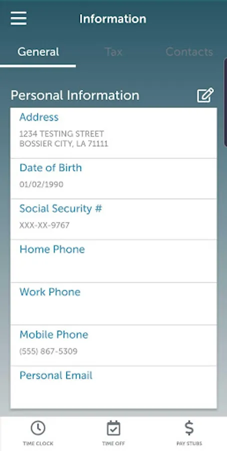 Employees can easily view their personal information, pay stubs, tax forms, and work schedule. In addition, employees can quickly clock in and out, and request time off.