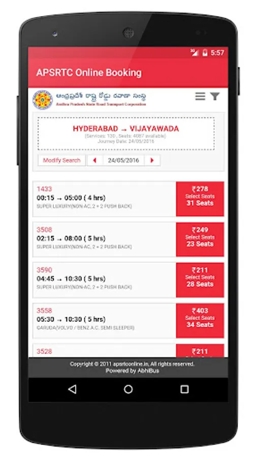 The APSRTC APP is Official Mobile Application, includes: