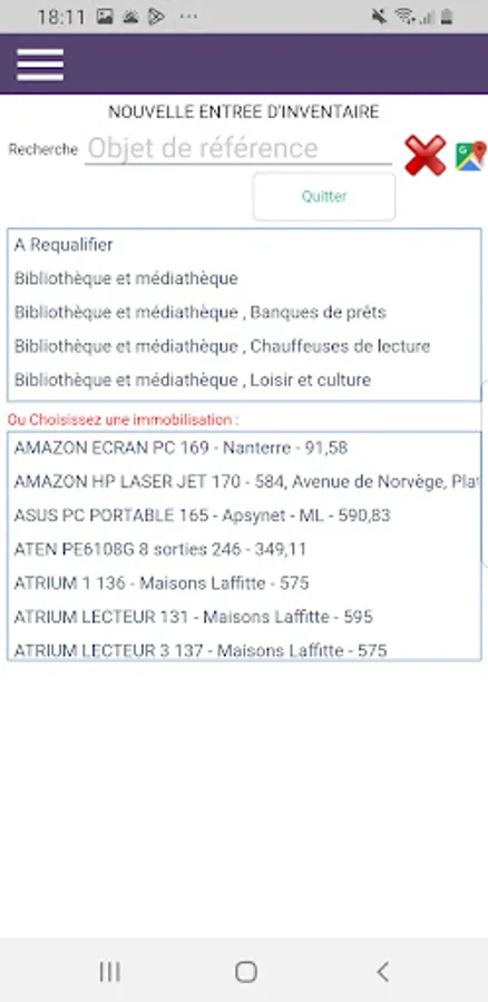 - Dynamic search for goods to be inventoried in a catalog of references from the accounting file