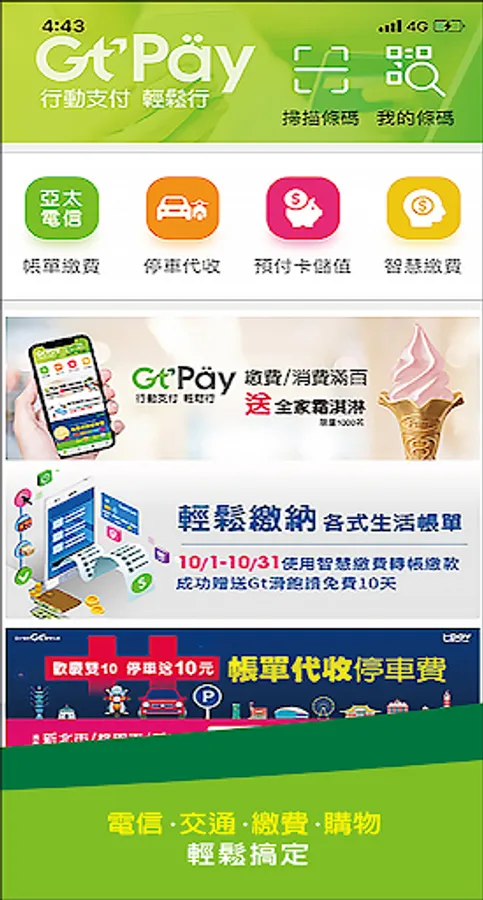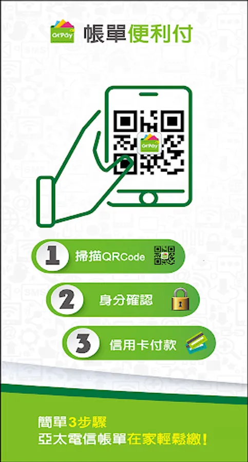 Simple 3-step scan pays, one finger completes payment, and easily pays Asia Pacific Telecom bills at home!