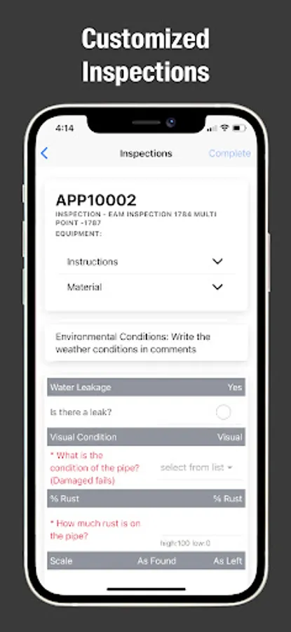 -Customer defined inspection and calibration checklists can be assigned to technician rounds for completion, to provide electronic record keeping of these important safety and audit compliance activities.