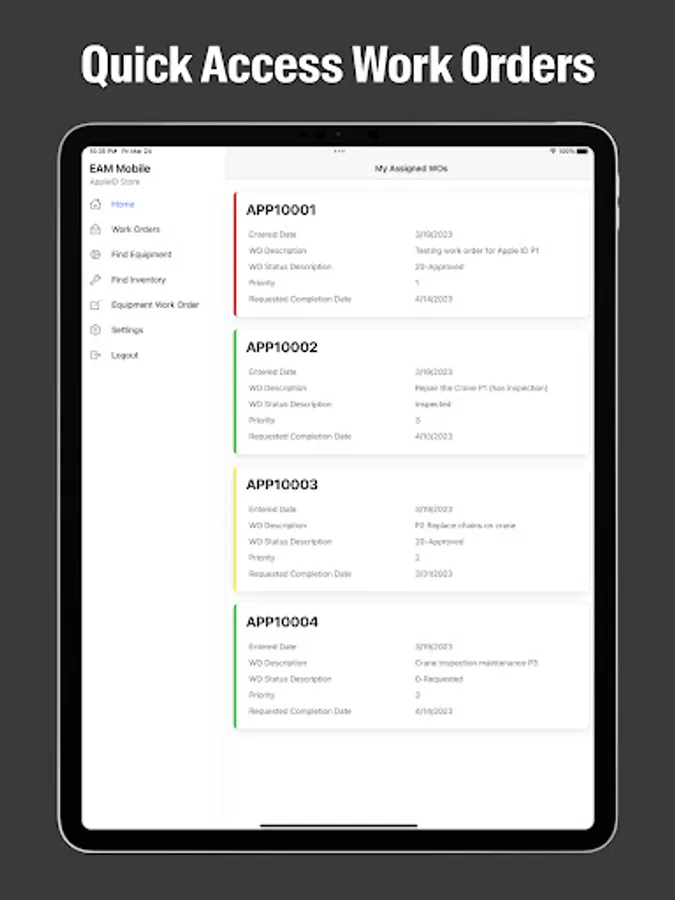 Aptean EAM Mobile is available with the Aptean EAM CMMS/EAM solution designed for maintenance professionals in manufacturing environments. Using its clean and intuitive interface, technicians have all the information needed to complete corrective and PM work, in real time, from their phones or tablets. This provides more accurate and timely data for better analytics and visibility into the status of work.