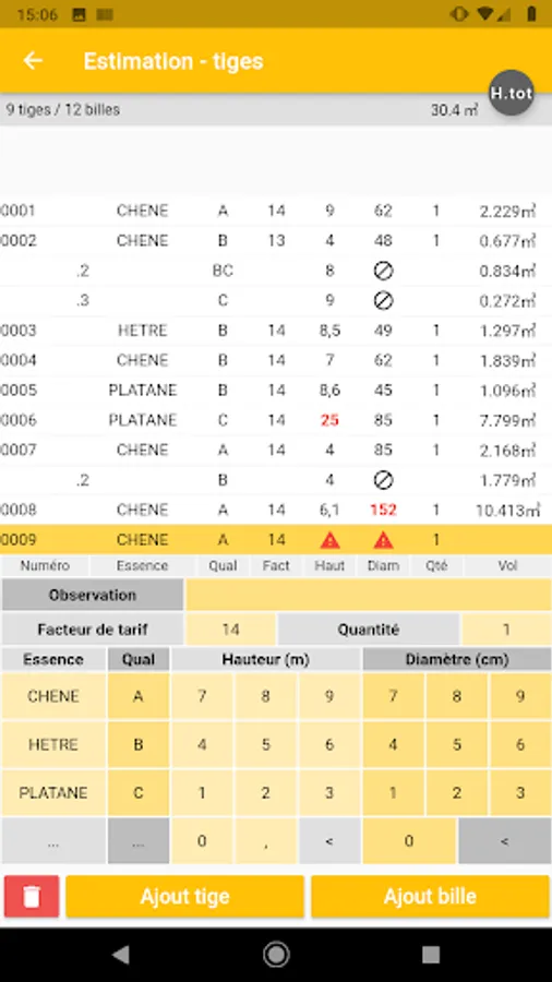 - detailed cut timber volumes, by log and log