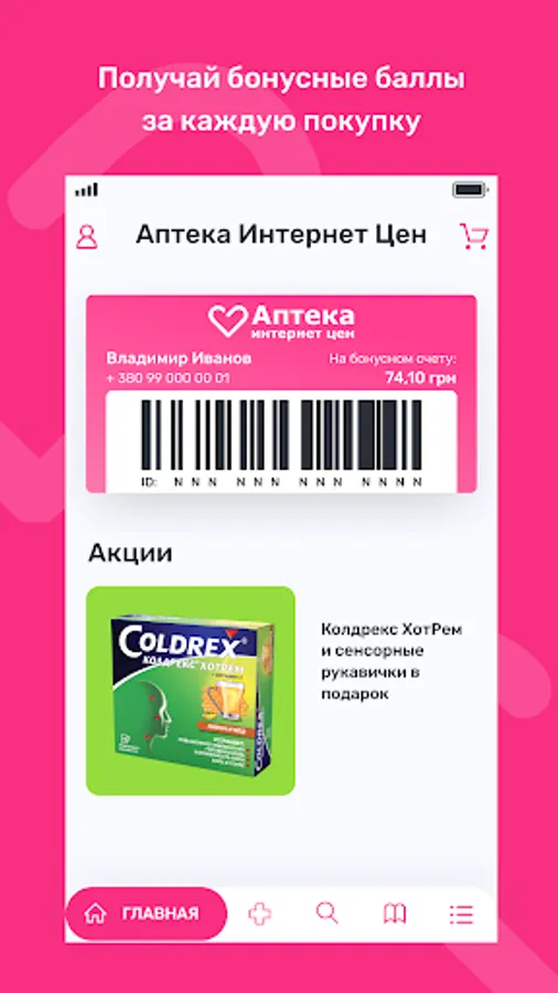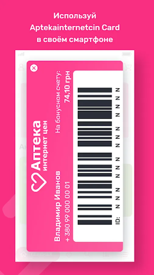 • Use Aptekainternetcin Card in your smartphone: use the electronic card on your smartphone and keep track of your bonus account online