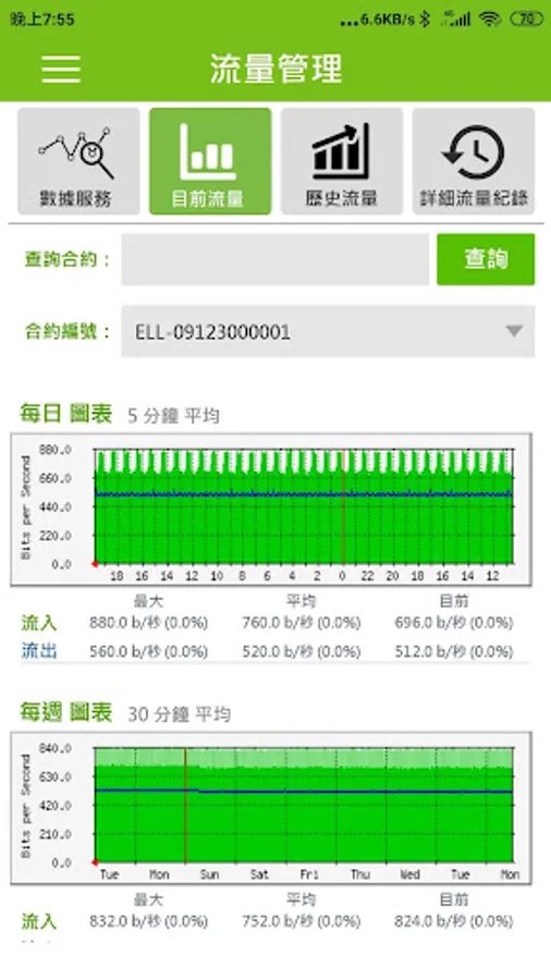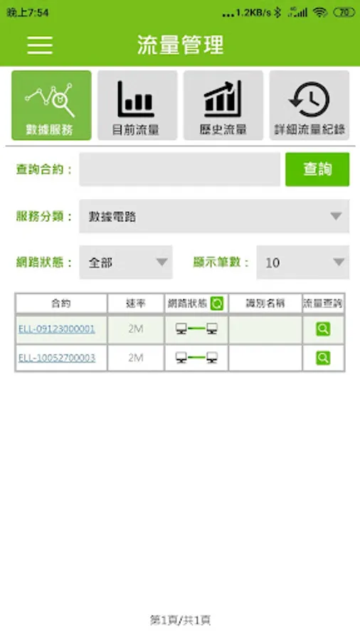 2. Traffic management: Provide real-time network traffic graph through query, swipe left and right to browse the information of each service, query historical traffic graph, and query and share detailed traffic data.