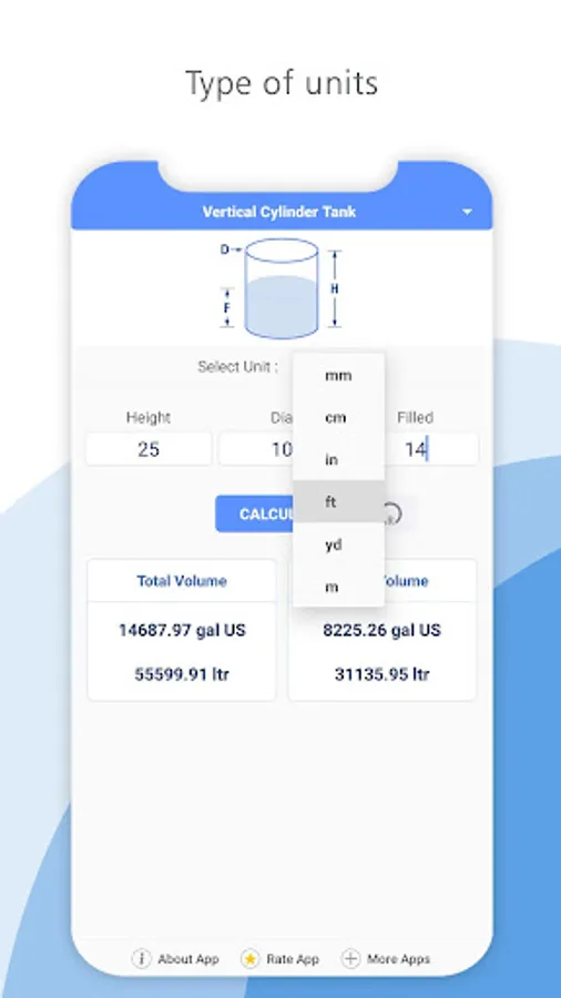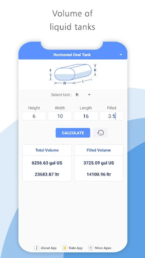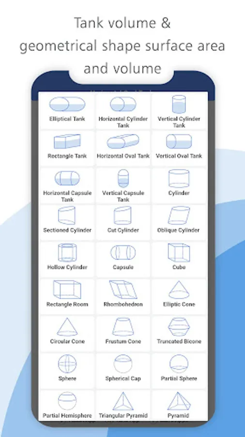 AreVo - easy app to calculate surface area & volume of many geometrical shapes and liquid capacity of total and filled tanks.