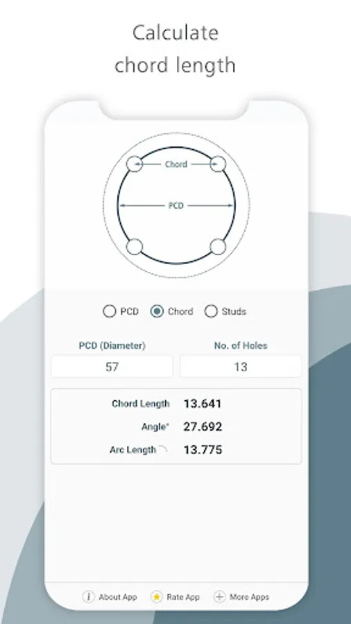 PCD calculator is very handy app to calculate PCD, Chord Length and Flange Holes easily.