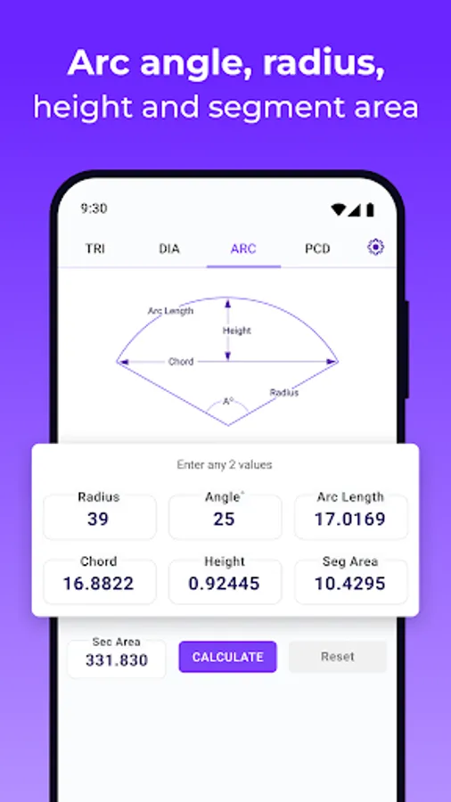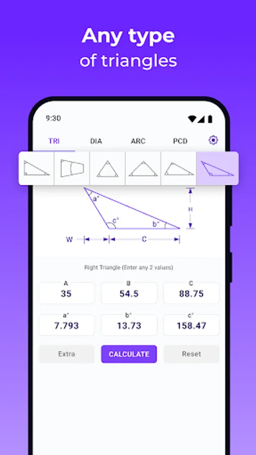 Discover the convenience of having a powerful geometry calculator that fits in your pocket: no more manual calculations or enormous formulas.