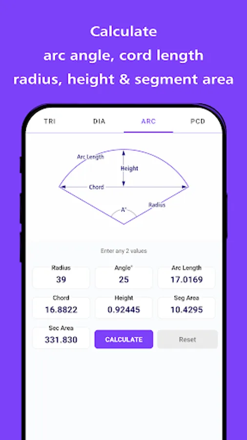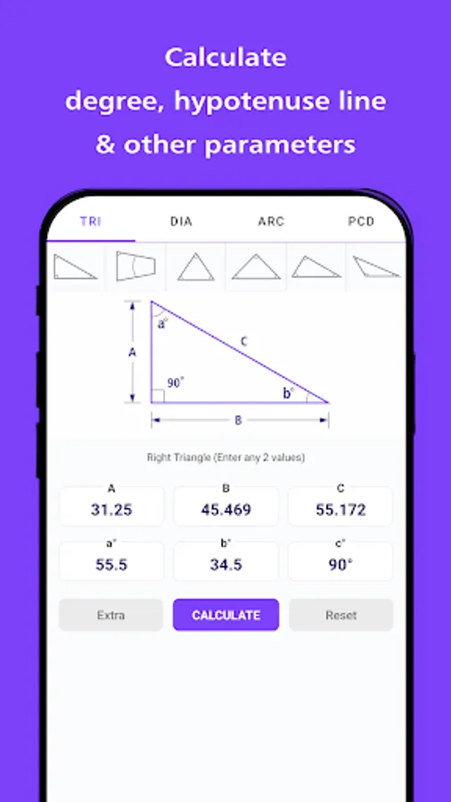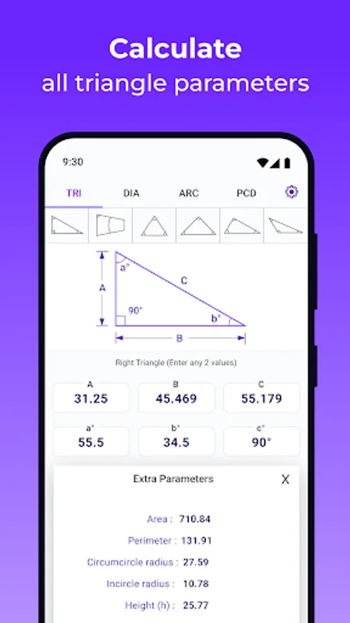 📐 All-In-One Trigonometry Calculator: Unleash the full potential of trigonometry with a trigonometry calculator app that calculates circumcircle and incircle diameters, arc measurements, and even PCD (pitch circle diameter) for an extensive range of geometrical shapes.