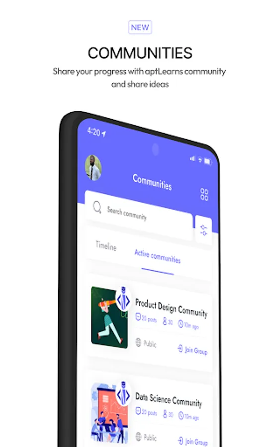 COMMUNITY: Harness the power of the aptLearn community to learn, interact, and collaborate with other tech people from diverse cultural backgrounds.