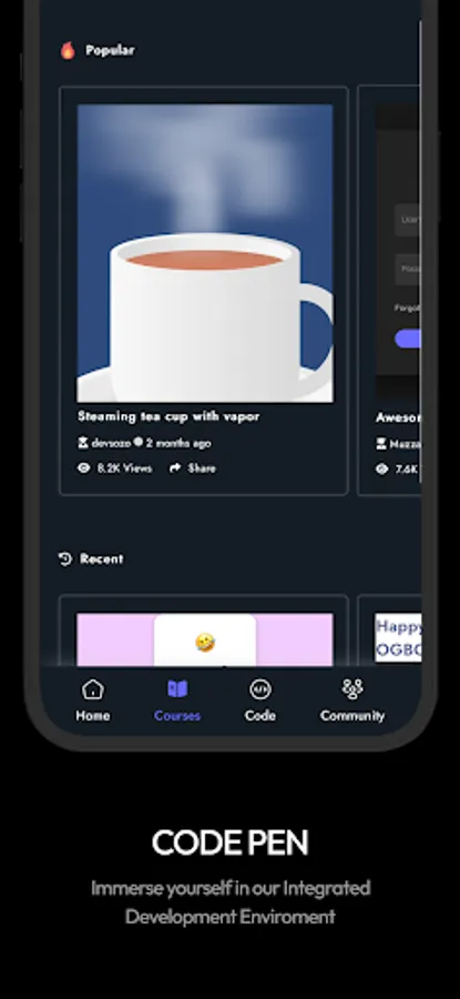 CODEPEN: Learn how to code from the comfort of your mobile phone using an online IDE (Integrated Development Environment).