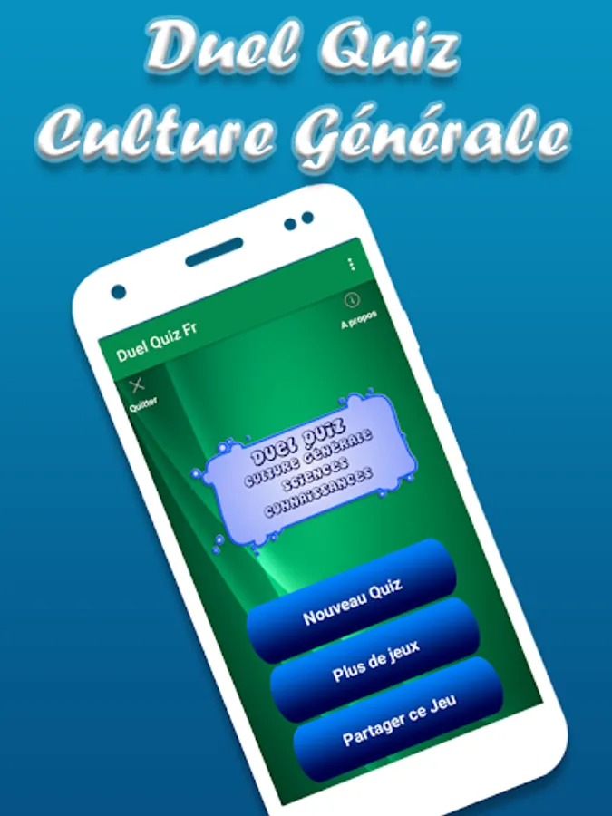 Duel Quiz - general culture in French: is an entertaining and cultural game to raise the level of knowledge. The main objective is to become rich in general culture and to raise your knowledge by answering questions covering different fields.