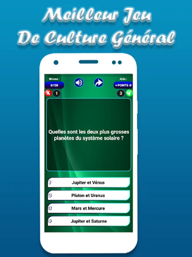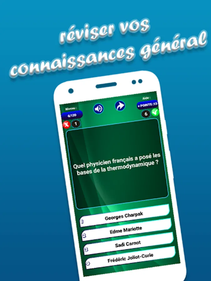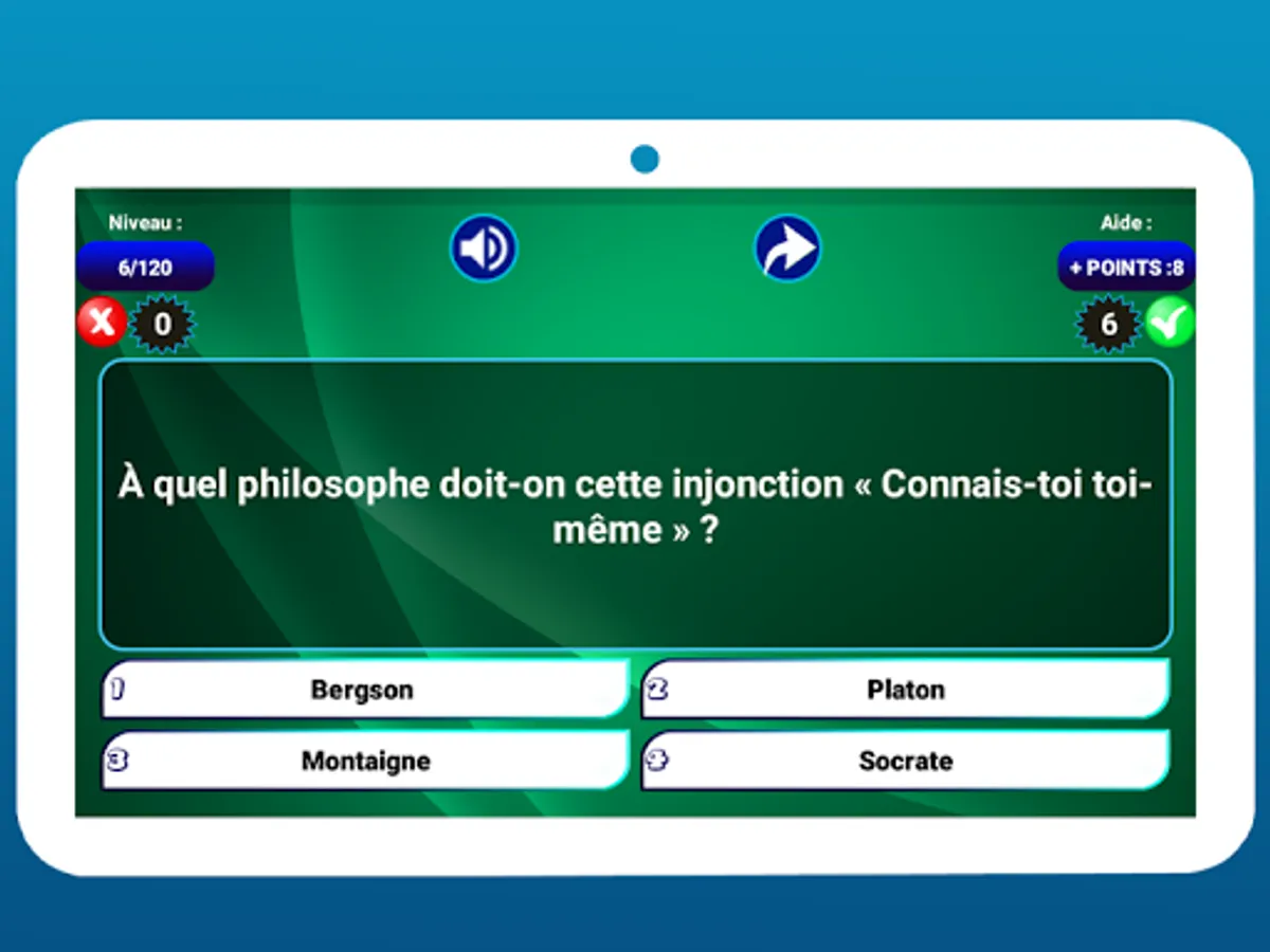 this game is about knowledge and about dueling with the different levels of this game by answering the question of each level; what is called quiz of clash, in general this game is informative, in the form of quizzes in different fields: culture, sciences, history, social sciences, science and technology, art and literature, sports, psychology, ... Ect .