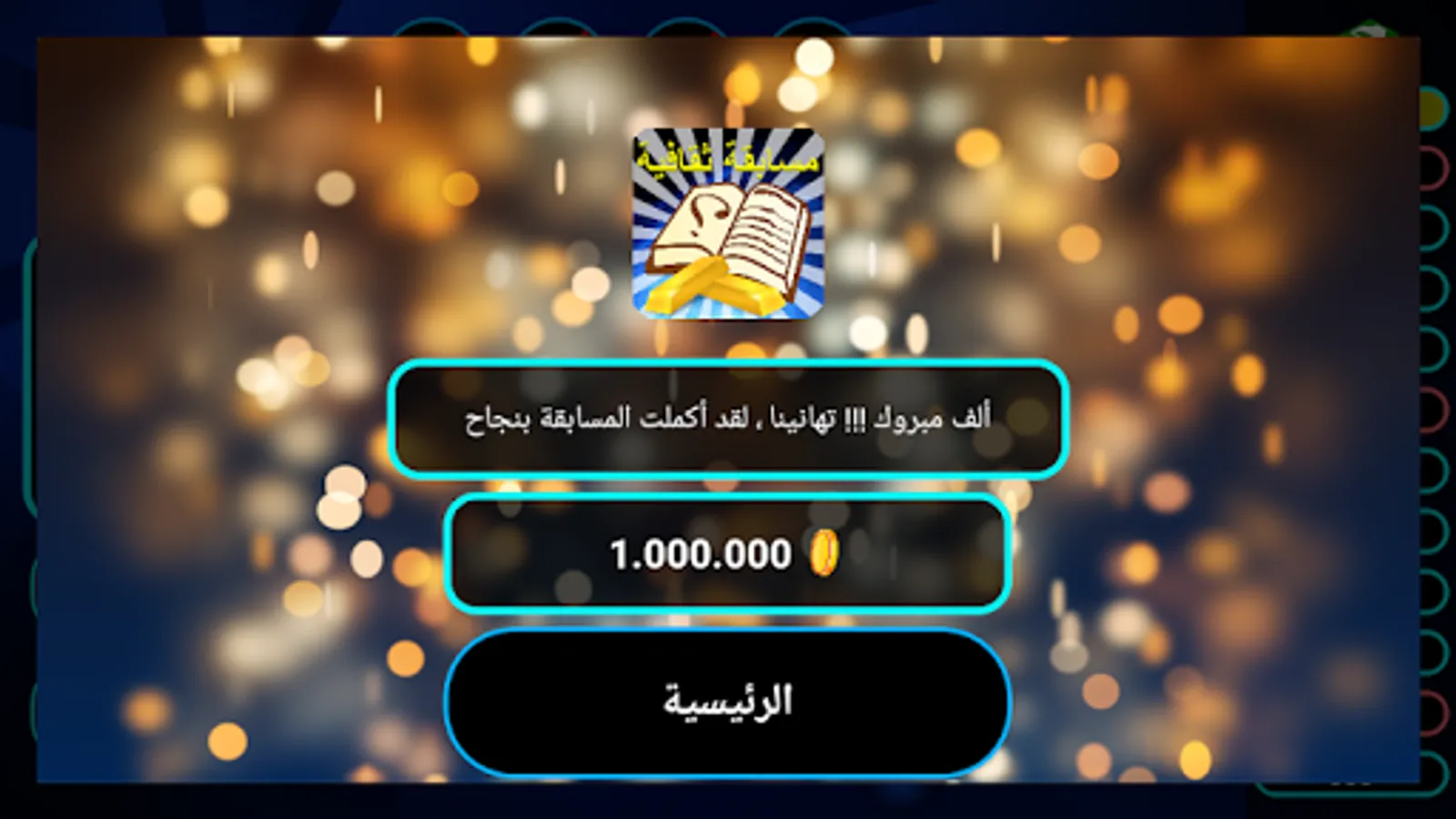 Knowledge Competition: An entertaining cultural and scientific game (culture and entertainment) to raise and test the individual's cognitive level, which is a game with post-general culture (takafa 3ama) and scientific information in various fields, intelligence test, knowledge balance test, and scientific balance (ta9if nafsak) , Which is a challenge who will win a million and search for the hidden puzzle, that is, the correct answer