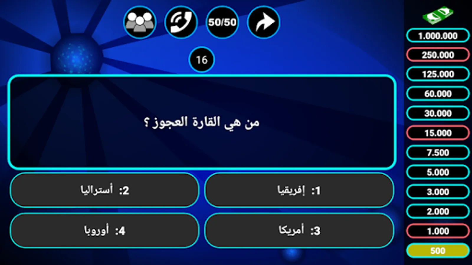 During this golden challenge, three options can be used to help: - Call a friend - Ask the audience - Delete two questions, as is well known in the Million Contest.