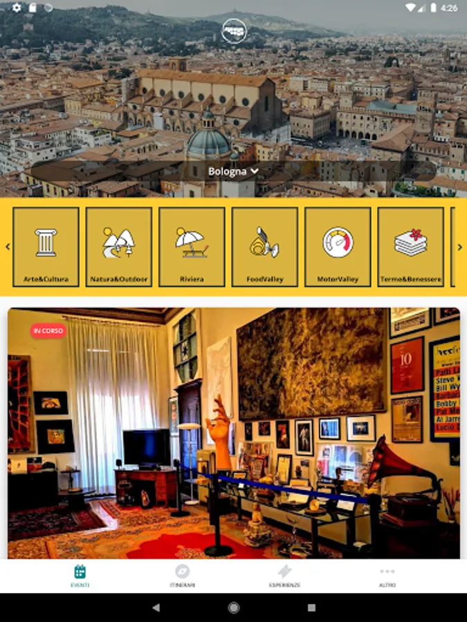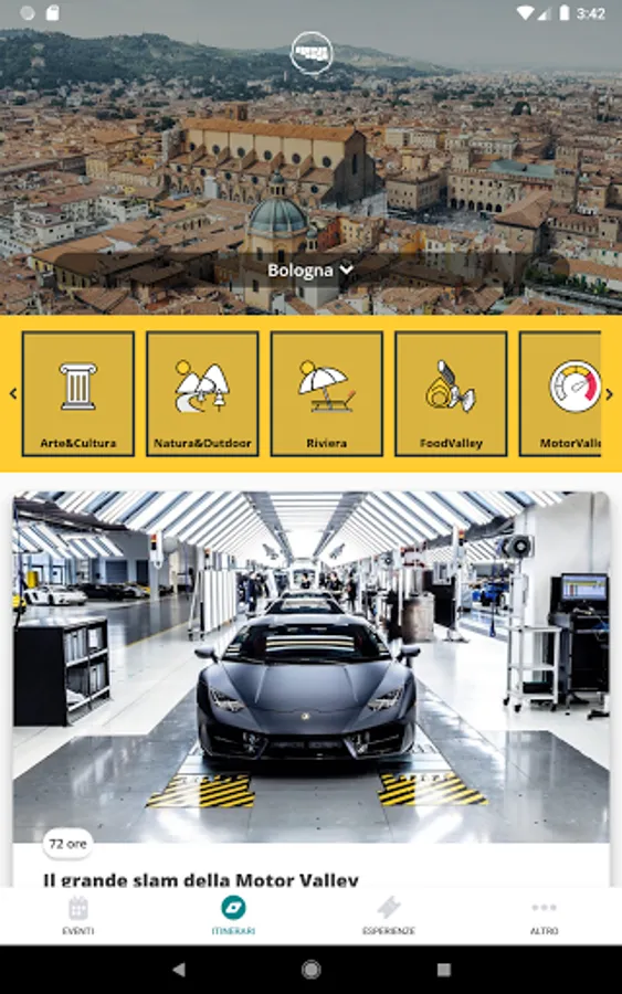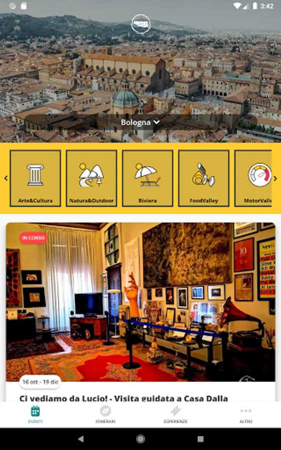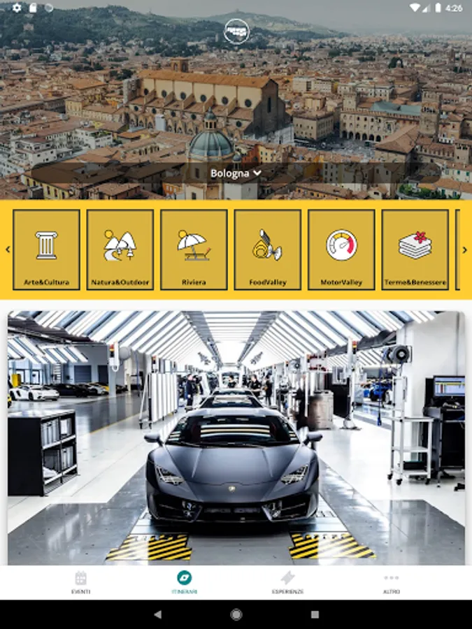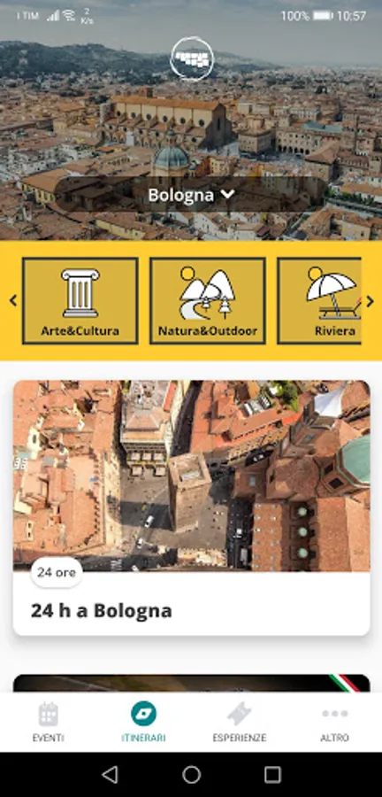 The inEmiliaRomagna APP allows you to always be updated on what is happening in the region and what you can do once you arrive at your destination. You will find suggestions for itineraries and discover the events that take place in the city you want to visit or where you have just arrived. All this can be selected according to your interests: from Art & Culture to Nature & Outdoor, from Food Valley to Motor Valley, from Spa & Wellness to Sport and Wellness Valley. But also many experiences to live, bookable with a click on Emilia Romagna Welcome, the regional tourist booking portal. In addition, if necessary, also the references of the regional tourist offices and information on the forecast weather. The APP is connected to Emilia Romagna Turismo, the official website for regional tourism promotion.
