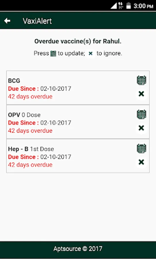 3. Update vaccine administration date for due and overdue vaccines for tracking vaccination schedule