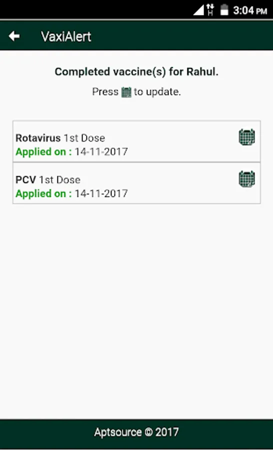 6. Vaccination alert based on Immunisation Schedule published by Indian Academy of Pediatrics