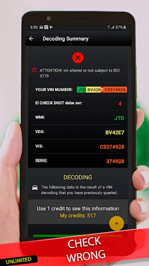Said mathematical verification consists of entering the 17 digits of the VIN (VEHICLE IDENTIFICATION NUMBER) and in real time it will solve the mathematical equation of the "CHECK DIGIT-DIGIT VERIFIER", showing you immediately the "CONTROL DIGIT", the same as that of be original,