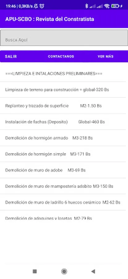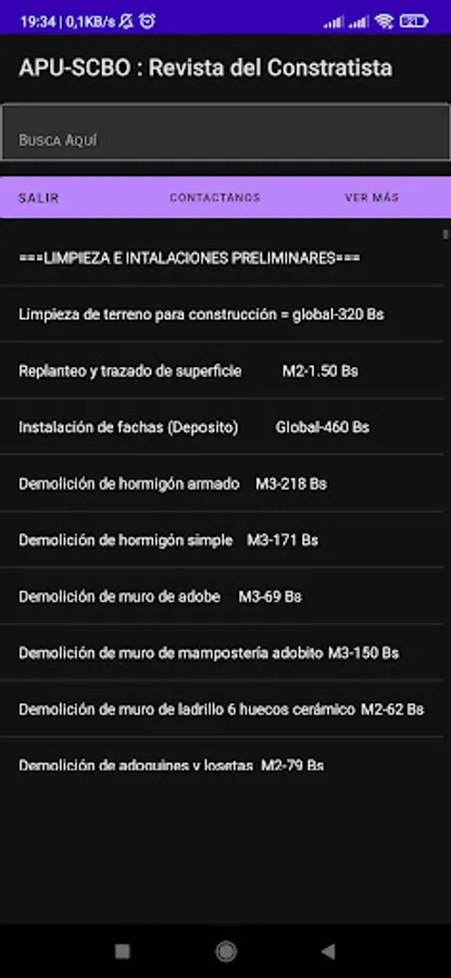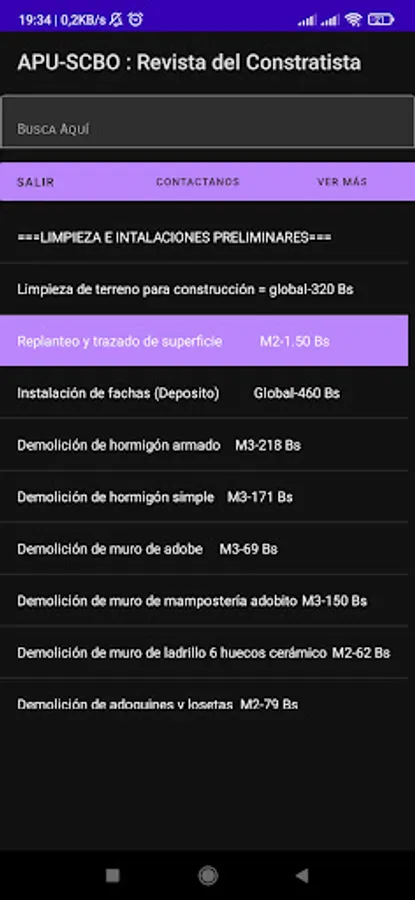 Unit budgets for construction costs for Santa Cruz de la Sierra Bolivia.