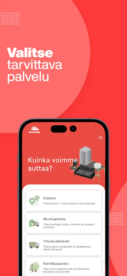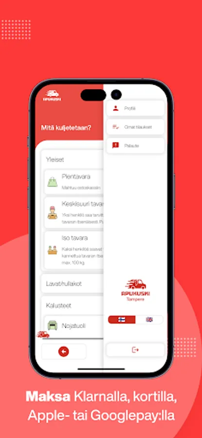 Apukuski is a quick and easy way to get a moving and transport service on your terms. Whether it's moving house, or transporting large and clumsy items from the store, summer cottage or online market home!