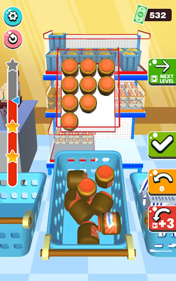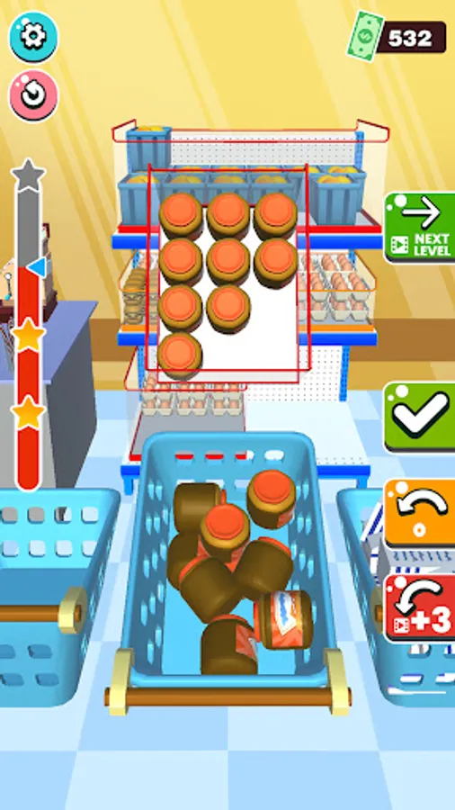 All you need to do is filling up the shelves using different items like groceries, beverages, cakes, milk, toys,… and try to fit them all in, AS NEAT AS POSSIBLE. The neater you place and organize your shelves, the more satisfying you’ll feel when you look at them. And of course, the customers will like to buy more from a perfectly organized store, you’ll earn more money to buy exclusive items for your store!