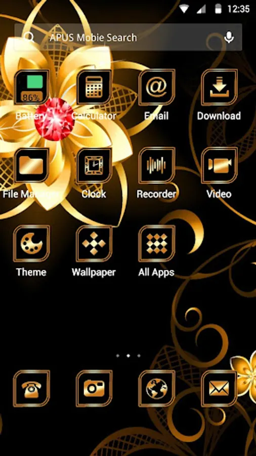 This theme is designed for APUS Launcher. With APUS Launcher, you can personalize your home screen with APUS Themes and Wallpapers, use APUS Mobile Search to find apps or websites easily, boost your device’s speed using APUS Boost and save your battery life with Power+.
