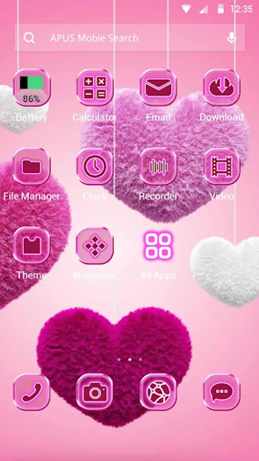This theme is designed for APUS Launcher. With APUS Launcher, you can personalize your home screen with APUS Themes and Wallpapers, use APUS Mobile Search to find apps or websites easily, boost your device’s speed using APUS Boost and save your battery life with Power+.