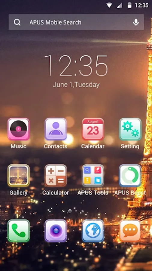 This theme is designed for APUS Launcher. With APUS Launcher, you can personalize your home screen with APUS Themes and Wallpapers, use APUS Mobile Search to find apps or websites easily, boost your device’s speed using APUS Boost and save your battery life with Power+.