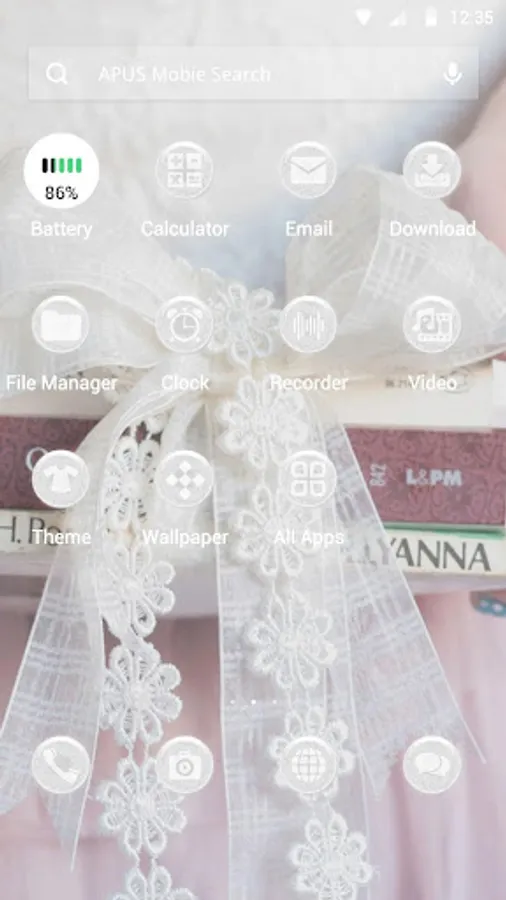This theme is designed for APUS Launcher. With APUS Launcher, you can personalize your home screen with APUS Themes and Wallpapers, use APUS Mobile Search to find apps or websites easily.