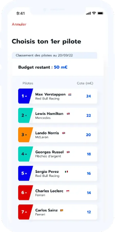 Compose your team on an auction system and each race weekend, score the most points between real performance of the drivers and virtual points to beat your friends!