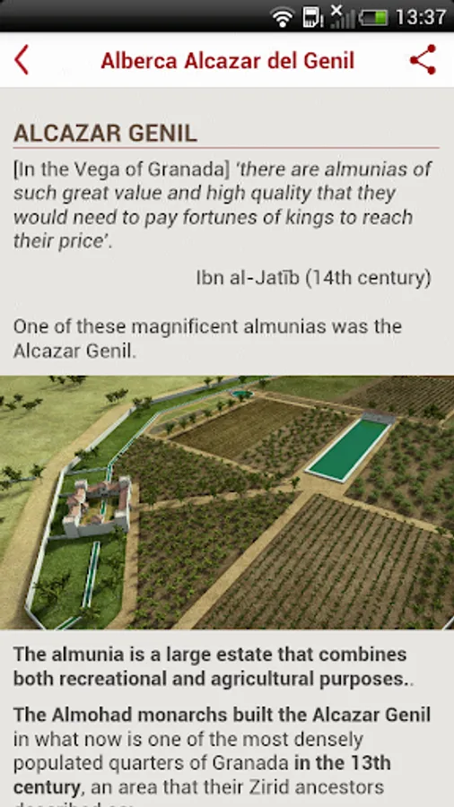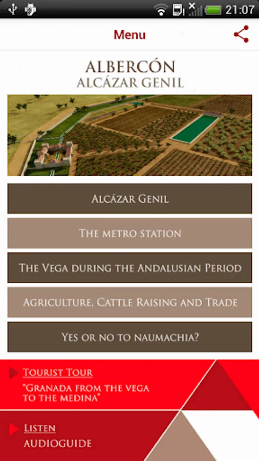 This route takes the visitors on a trip that begins in the Al-Andalus rural area –the fertile plain of Vega de Granada–, passes through the heart of the medina, and ends at the historic neighbourhood of Albaicin. On our tour we find almunias, rabitas, bridges, corn exchanges, and other valuable testimonies of the rich Islamic past of the city of Granada.