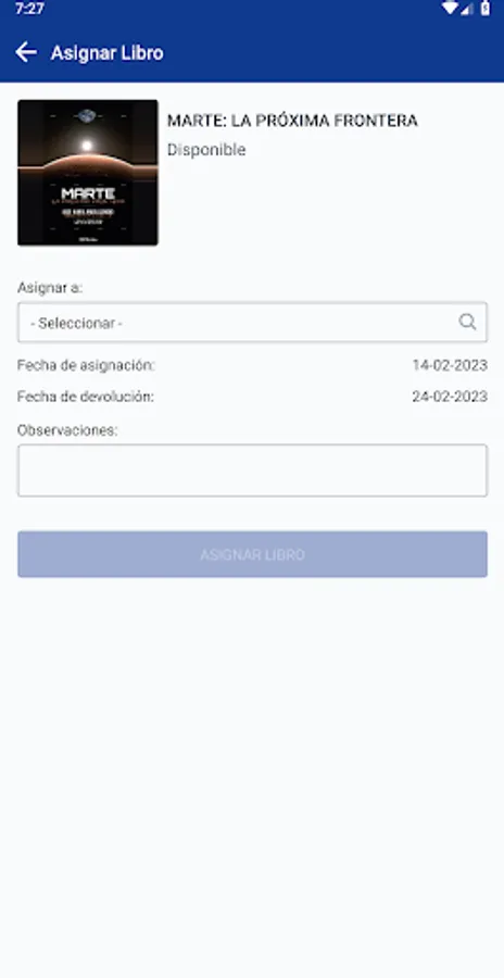 App for management control in the allocation and return of physical books