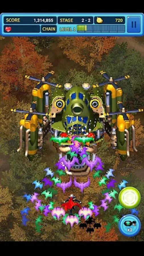 Touch bomb button: Blocks enemy's bullet by using bomb.