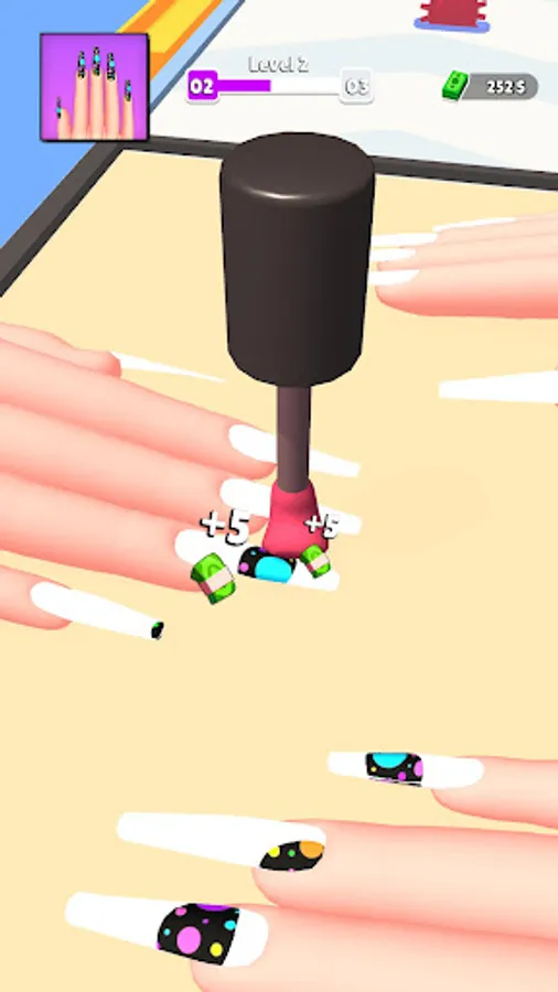 🚀 Boosters and Upgrades: Enhance your nail art abilities with boosters and upgrades that enable you to speed through levels, perform daring jumps, and create larger-than-life nail art designs.