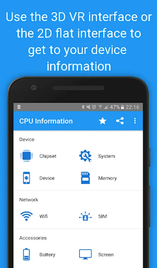 ☀️CPU information / Device Info is a small, great, and easy-to-use utility app to get all the information of your Android device through an exciting 3D based interface.☀️