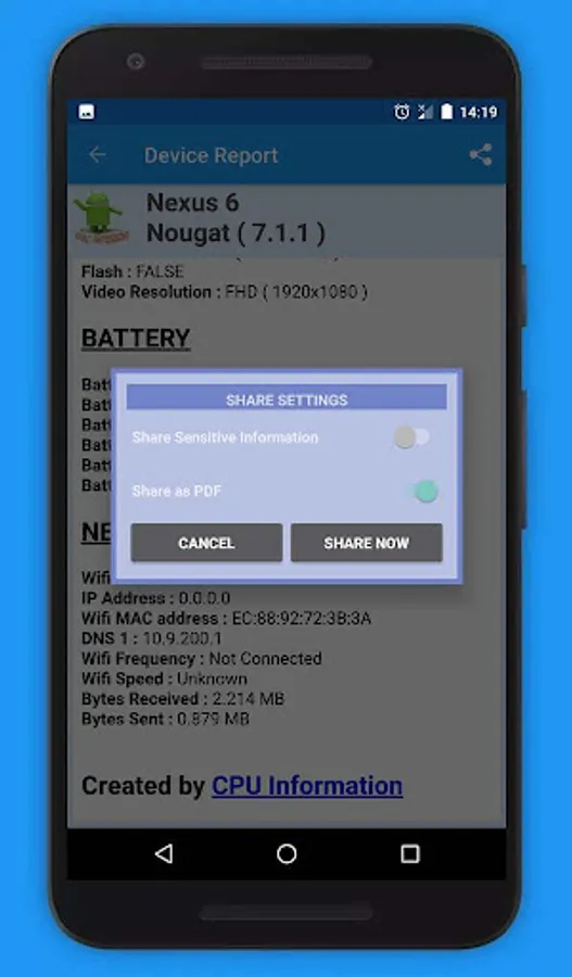 CPU Information / Device info does not in any way retrieve or store any of your data. Access to your data is purely used to display the information to you.Your phone, your data your privacy, our guarantee.