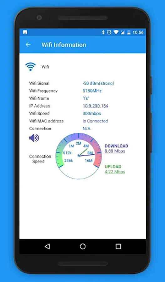 ❤️ Wifi Info : Informs you about wifi strength network speed IP, and frequency. This view also measures your true connection speed..