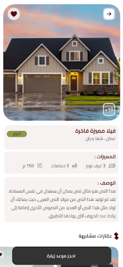 Your property application is an application dedicated to selling, renting and managing real estate in Jordan. The application displays the available properties according to your area or according to the area you specify or search in.