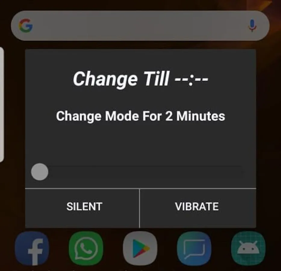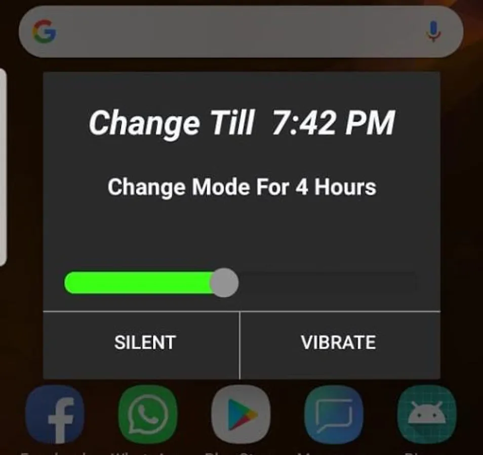 Once you download the app, there is no need to open it. Ringer Timer works by implementing the Ringer Mode Switch in the Drop Down Notification Bar in several android phones, or the Do Not Disturb Switch in Stock Android Phones. Whenever you click on the Change Ringer Mode toggle or the Do Not Disturb toggle, a small dialog box will appear, prompting you to set a timer for changing the ringer mode, select the required mode and you're done.