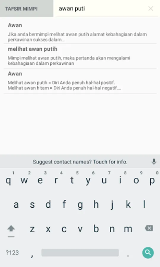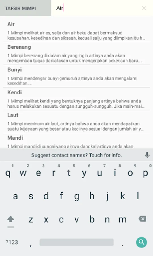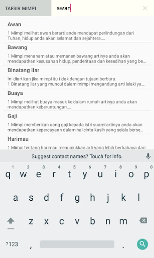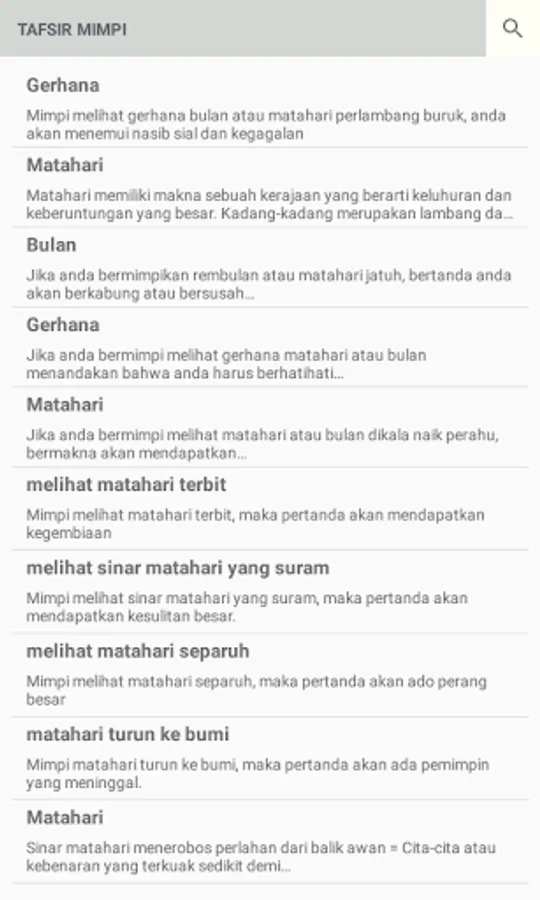 This application like Dictionary that by typing a keyword brings up several options the interpretation of various sources.