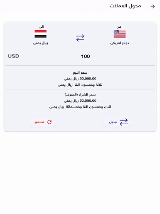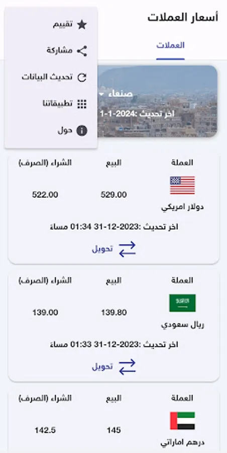 * Local currency rates service for several governorates of Sana’a, Aden, and others