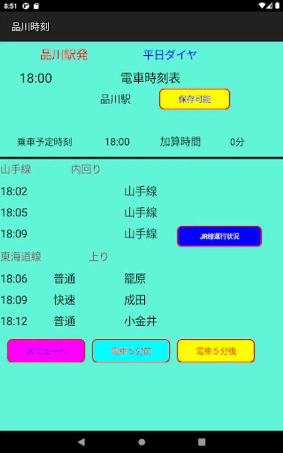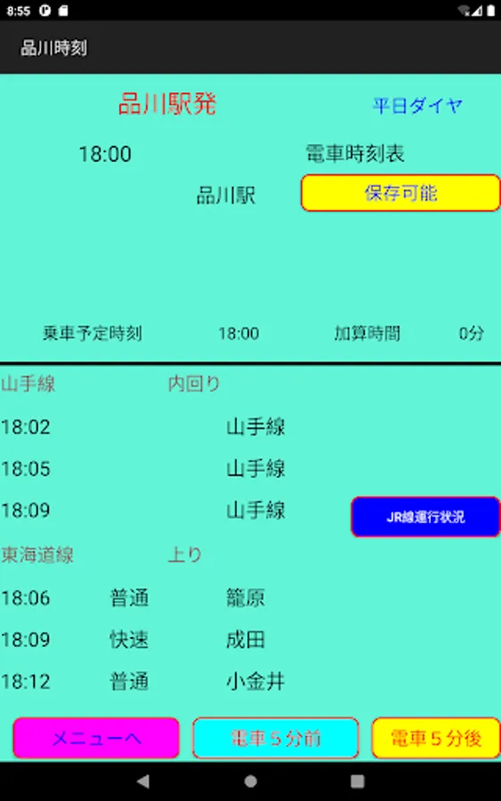 If you are late: Click the 5 minutes after train button to search the train timetable at the time 5 minutes after. Supports up to 300 minutes.