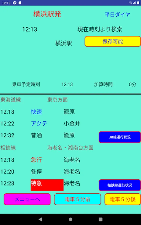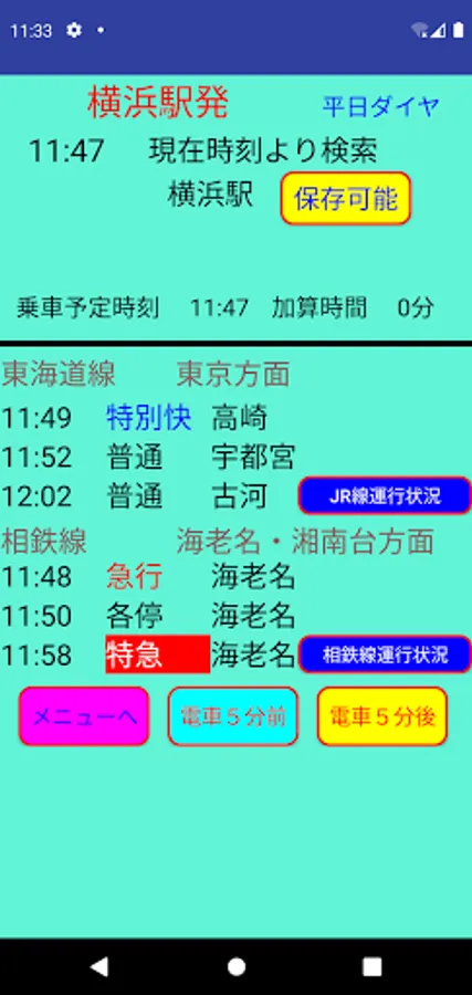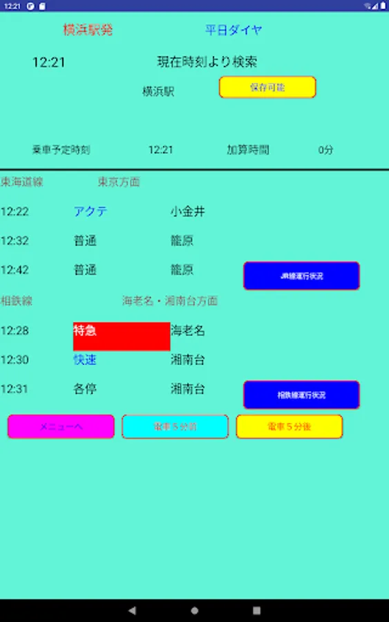 ・ Train timetable search: Current time, specified time + Yokohama station train time