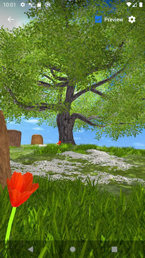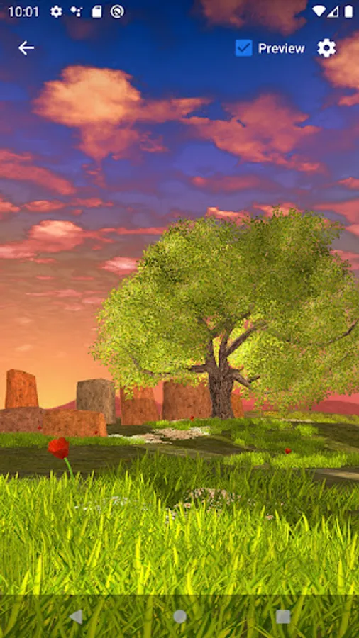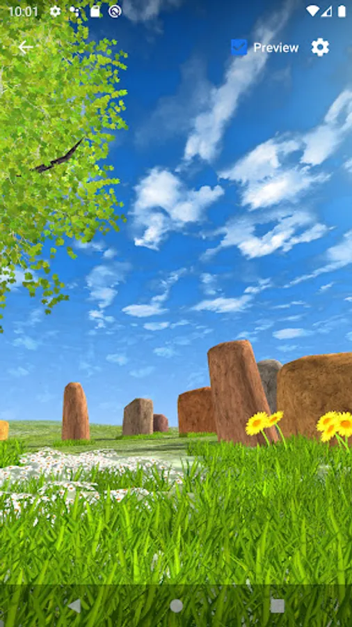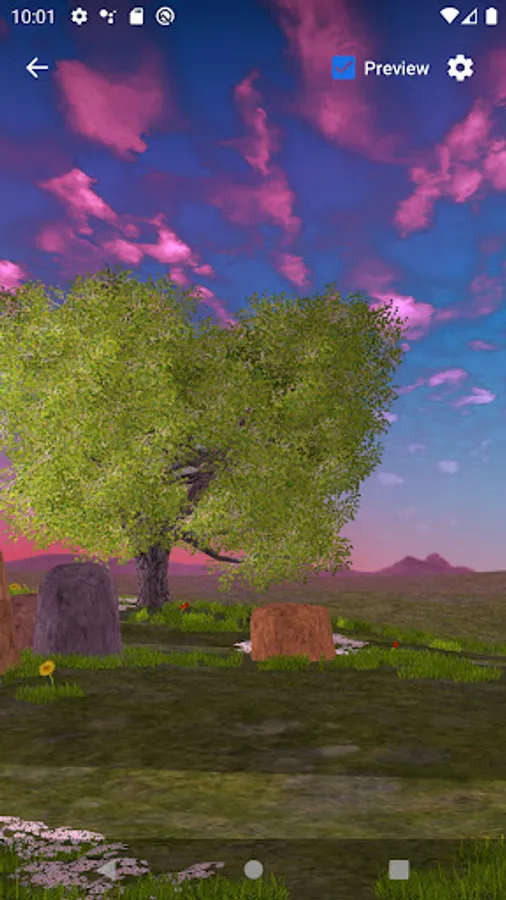 This wallpaper allows you to navigate to different points of view on scene when you scroll your homes screen. Also you can set an automatic camera mode to change between scenes after a while.
