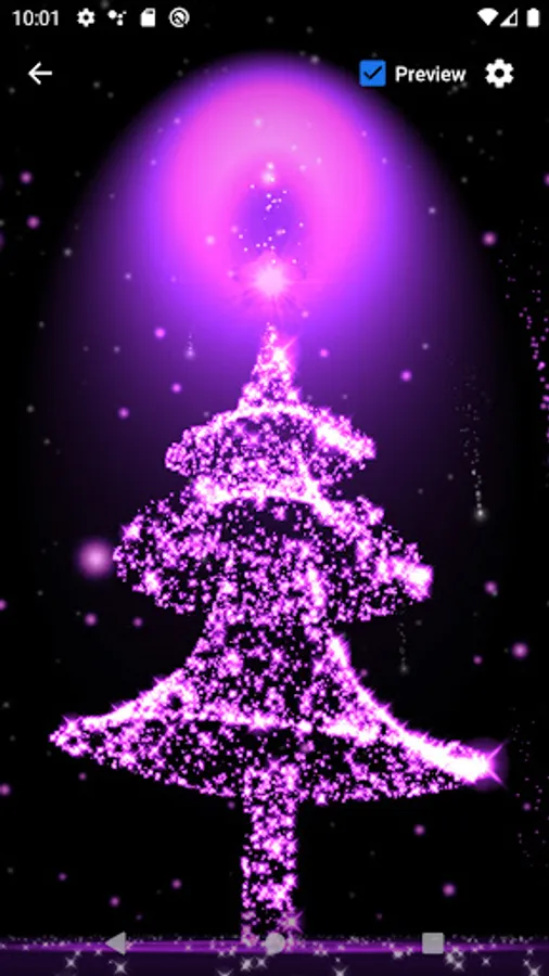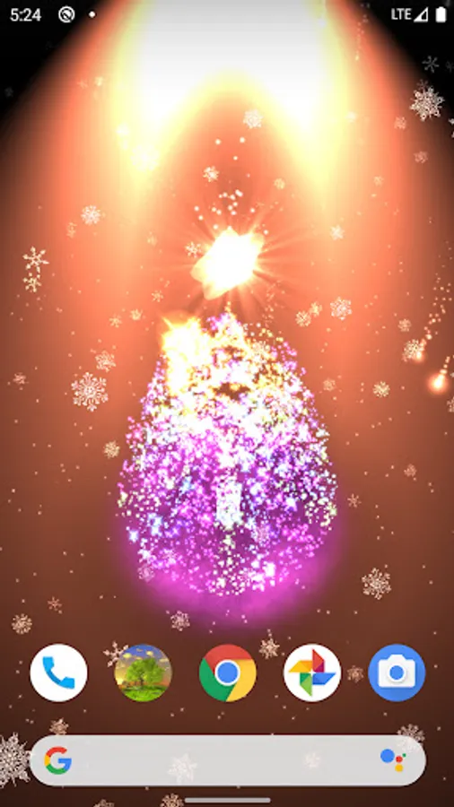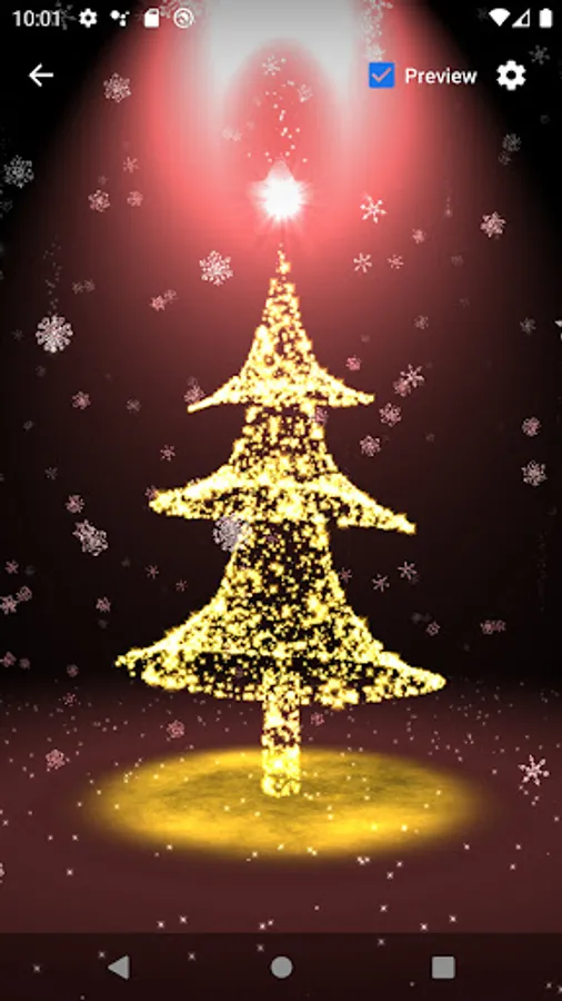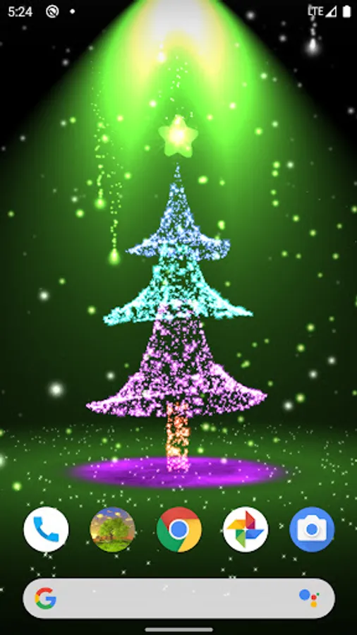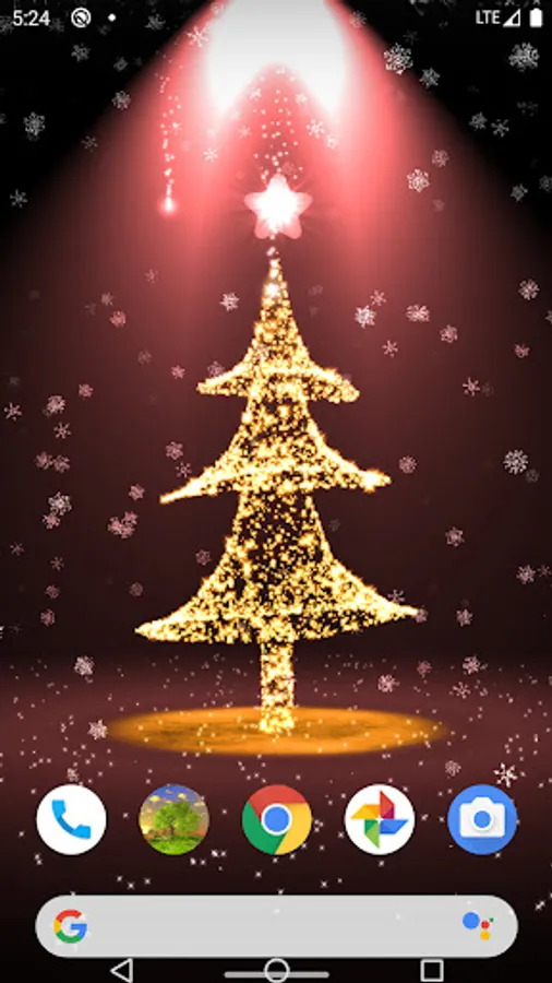 Christmas live wallpaper is a 3D scene featuring a sparkling Christmas Tree lighting.