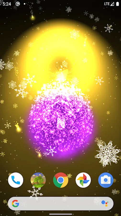 Enjoy the spirit of Christmas in your device tapping the tree-topper (3D star) and listening to Christmas bells. Download it and you will find a realistic snowfall of lights and an endearing Christmas scene!