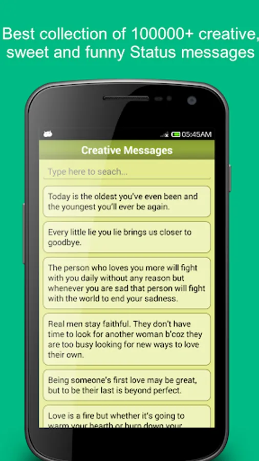 * 50000 latest status messages included apart from old msgs: best love & romance quotes, messages, sayings and new SMS for all occasions.