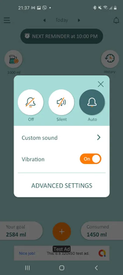 Finally he will ask you whenever you want to send you an alert to remind you to drink water. A reminder every hour is a good choice.