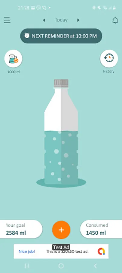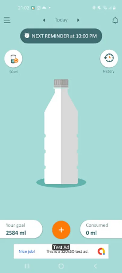 Everything is ready! Enter the application whenever you can, add the water you drank and see your bottle of the day, fill up! Every day we want to have the water we need so much.